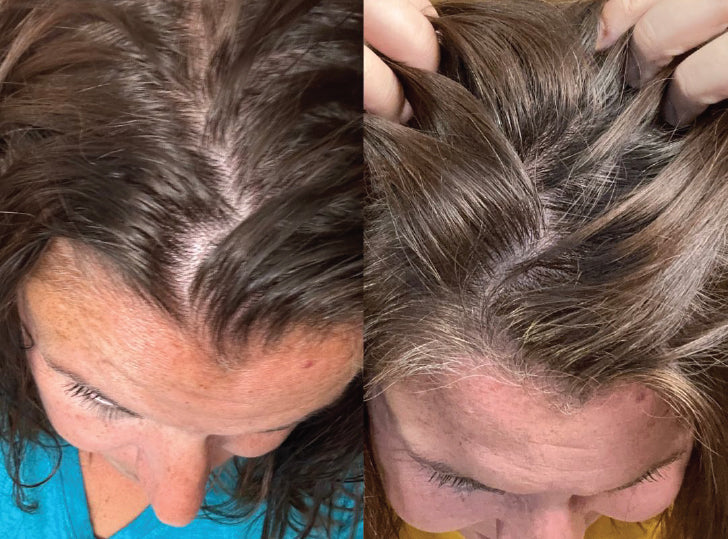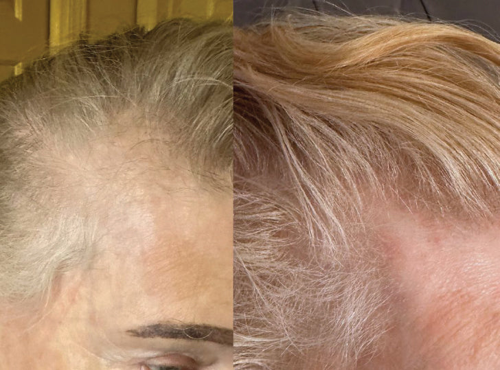 Na een paar maanden van continue groei zal de haaruitval beginnen te vertragen en zal er nieuw haar verschijnen. Dit betekent dat het product de hergroei stimuleert en de progressie van haaruitval omkeert. De haren zullen gezonder zijn en er dikker uitzien. De vroege haargroei kan donzig en zacht zijn, maar bij verdere behandeling produceert het nieuw haar met dezelfde consistentie als ander haar op uw hoofdhuid.