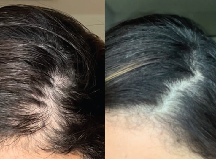 De dekking van de hoofdhuid zal merkbaar verbeteren als dikker, voller teruggegroeid haar plekken met dunner wordend haar opvult. De haardichtheid langs de haarlijn zal ook verbeteren.