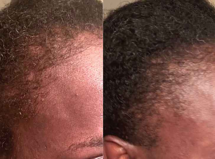 Ik zie overal wat groei, vooral aan de zijkanten en voorkant, en dat heeft mijn zelfvertrouwen enorm vergroot. Bedankt dat je me weer een glimlach hebt bezorgd.