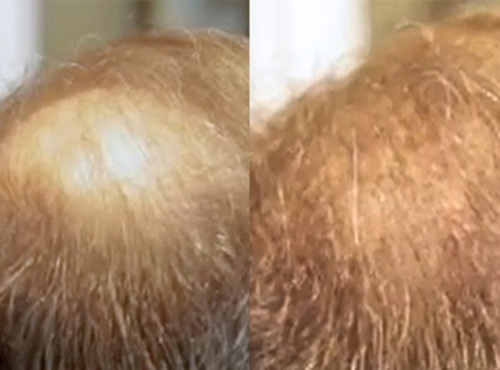 Mijn haar zag er dun uit, maar toen ik dit product erop aanbracht, werd het dikker. Het pakt al mijn kleine kale plekjes aan. En het komt niet op je handen terecht!
